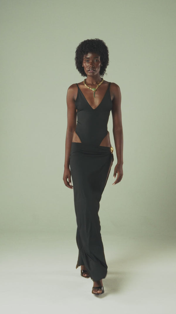 • Décolleté triangle et coupe échancrée pour allonger la silhouette