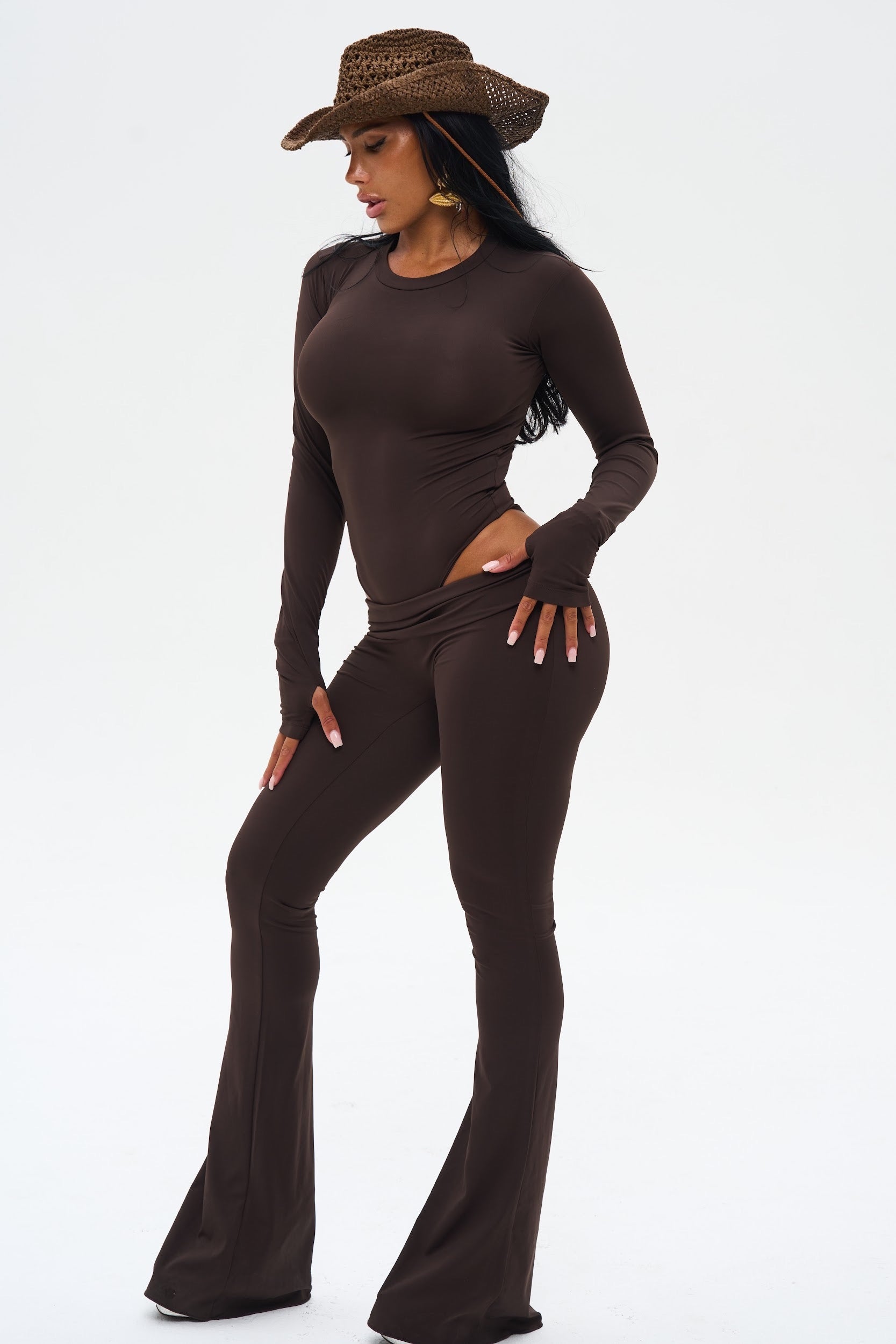LEGGING ASYMÉTRIQUE ÉVASÉE - MARRON