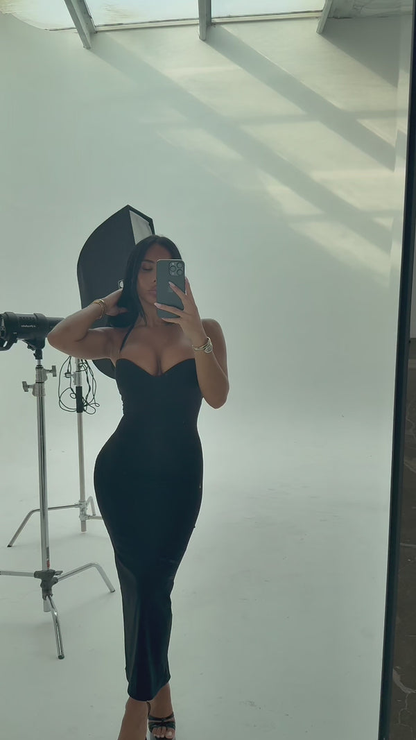 La Robe Sablier Gainante™️ épouse les formes avec une coupe ultra-cintrée qui creuse la taille et sculpte instantanément la silhouette. Sa matière gainante et épaisse lisse les courbes sans marquer, tandis que les baleines intégrées assurent un maintien parfait. La fente arrière et la longueur mi-longue ajoutent une touche chic et sensuelle.
